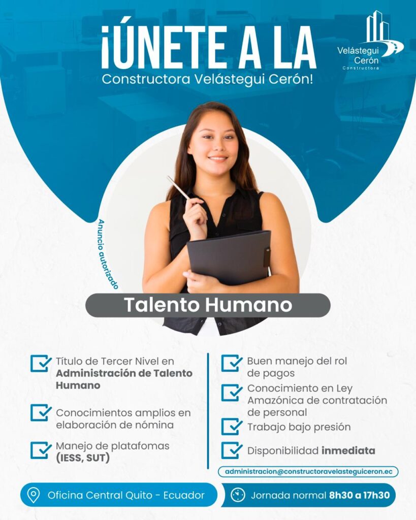 - Título de tercer nivel en Gestión de Talento humano o Administración de talento humano